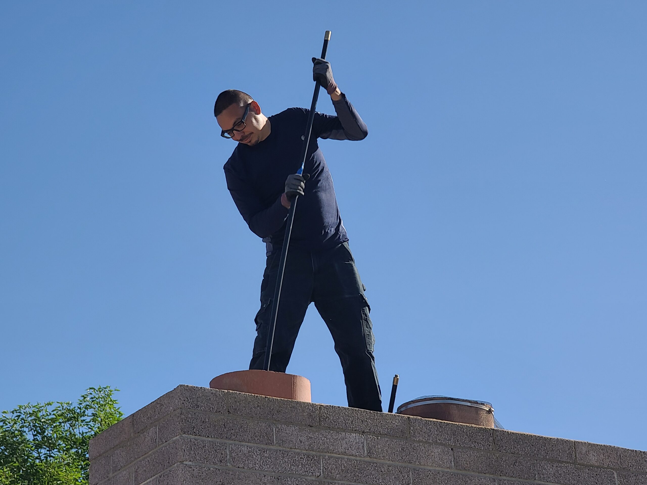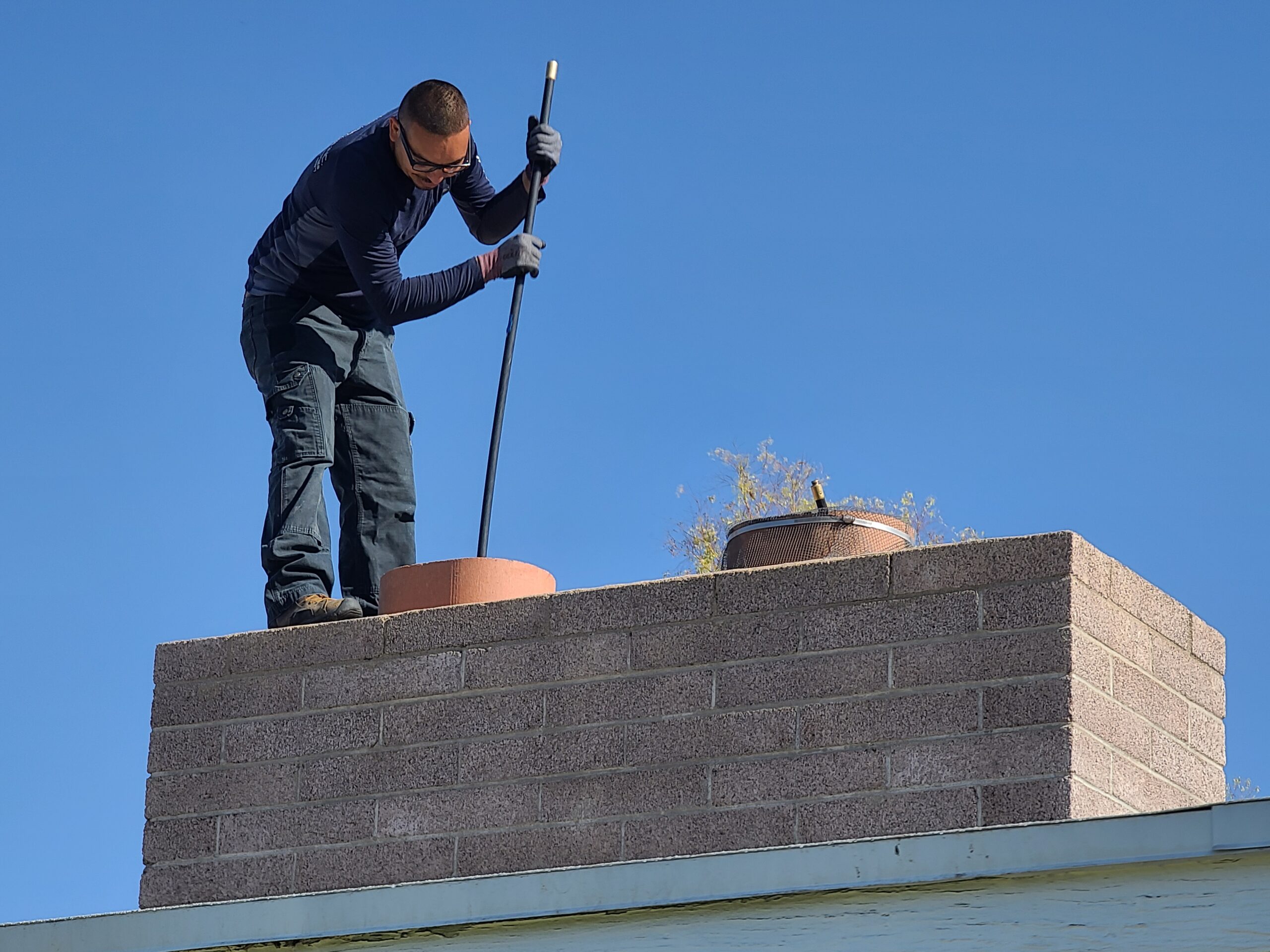 A chimney sweep uses brushes and a vacuum to remove soot and creosote from the flue, firebox, and smoke chamber. The service typically includes a Level 1 visual inspection for obstructions and damage.